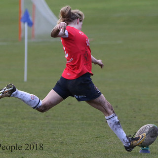 Another line out at ten minutes in saw the ball go to captain and all round legend Annie McKelvey, who set an example by stepping five defenders in a row to slide under the posts for the first try! Only a few minutes later Rapid Raq Matos followed up with a run down the wing for try number 2, setting the tone of the rest of the match.